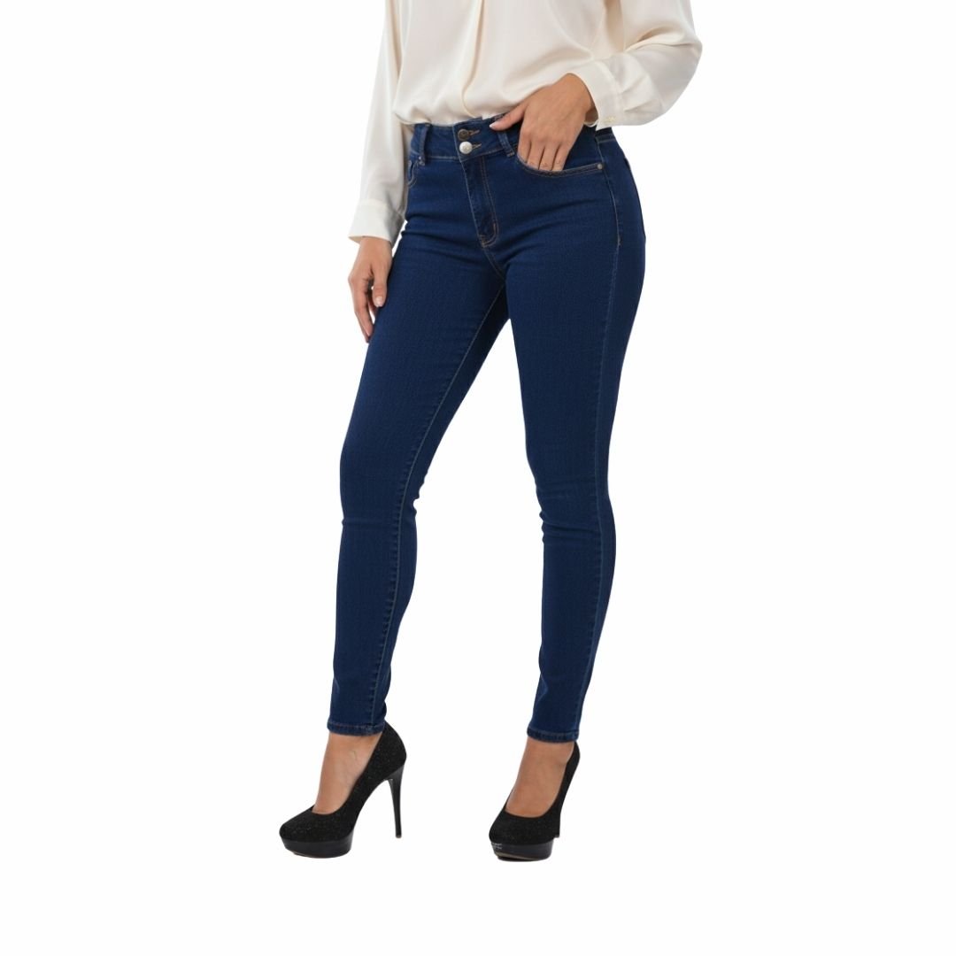 Jeans femenino licrado industrial de 10 onzas, diseñado para ofrecer comodidad, resistencia y un ajuste moderno. Confeccionado en tela de 96% algodón y 4% spandex, se adapta al cuerpo sin perder firmeza.